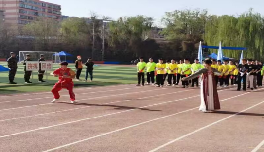 甘肃建筑职业技术学院第二十九届田径运动会于4月26日至28日胜利召开,建筑工程系派出四个方阵240人参加开幕式。第一个入场的是筑梦芳华代表队,他们头戴安全帽、推着推车,手拿磨灰刀、铲子,展现了2000后建筑工人风采,他们成为建院一道靓丽的风景线。