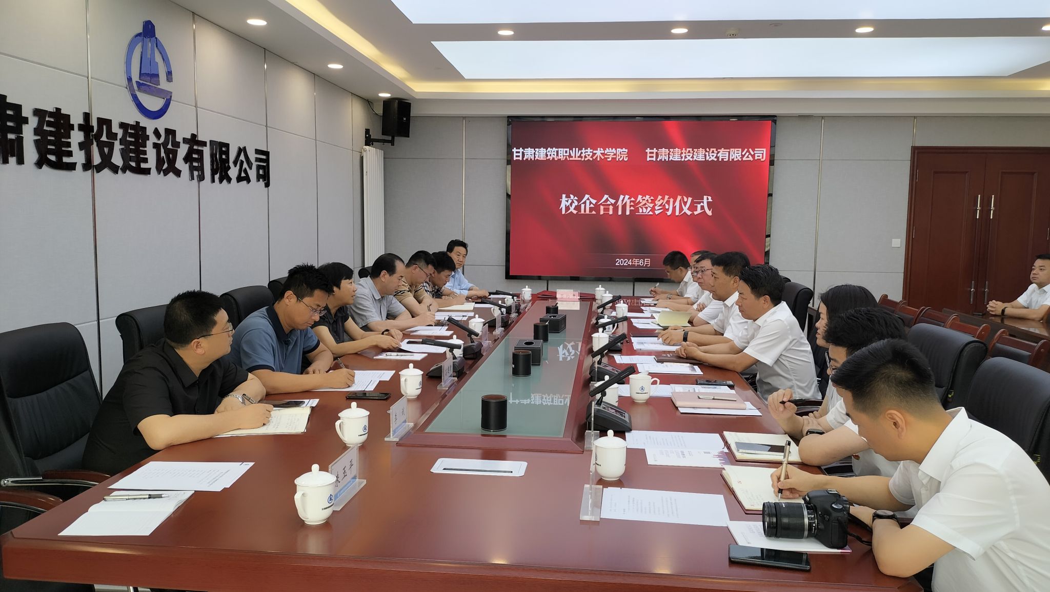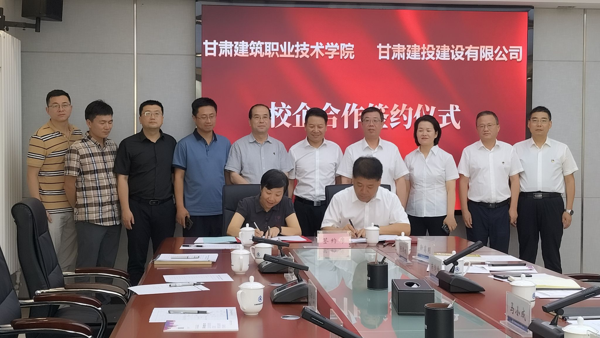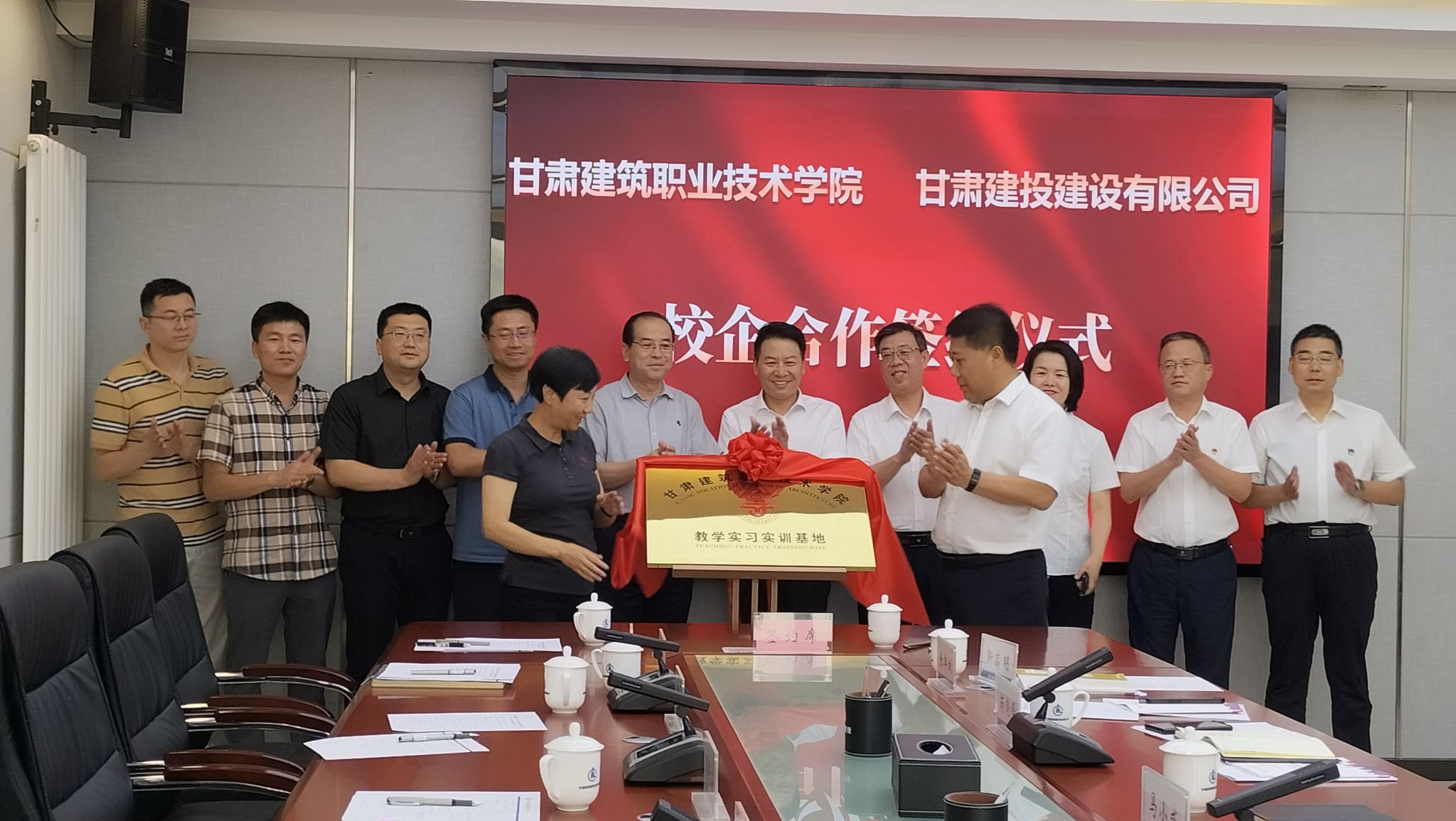 仪式上,王娟丽介绍了学院的历史沿革和办学发展情况。她指出,在房地产业不景气和建筑业下行背景下,建筑类企业与职业院校要积极寻求校企合作契合点,推动学校实训资源与企业实践资源共建共享,吃透吃准产教融合政策,借助学院实训条件为企业人员开展技能培训、大安全实训、技能比武等活动,邀请企业专家人才进校授课讲座,建立校企共享人才库,强化科研技术合作,实现教育与产业深度融合发展。马小成介绍了甘肃建投建设有限公司基本情况及招录学院毕业生情况;他指出,近年来公司共招录学院136名毕业生,占公司职工总人数的20.4%,有40名毕业生已走上主管级及以上领导岗位,毕业生吃苦耐劳、踏实肯干,广受企业项目好评。随后,双方签订了校企合作协议和校企共建教师实践基地协议,王娟丽代表学院为甘肃建投建设有限公司授牌“甘肃建筑职业技术学院教学实习实训基地”。