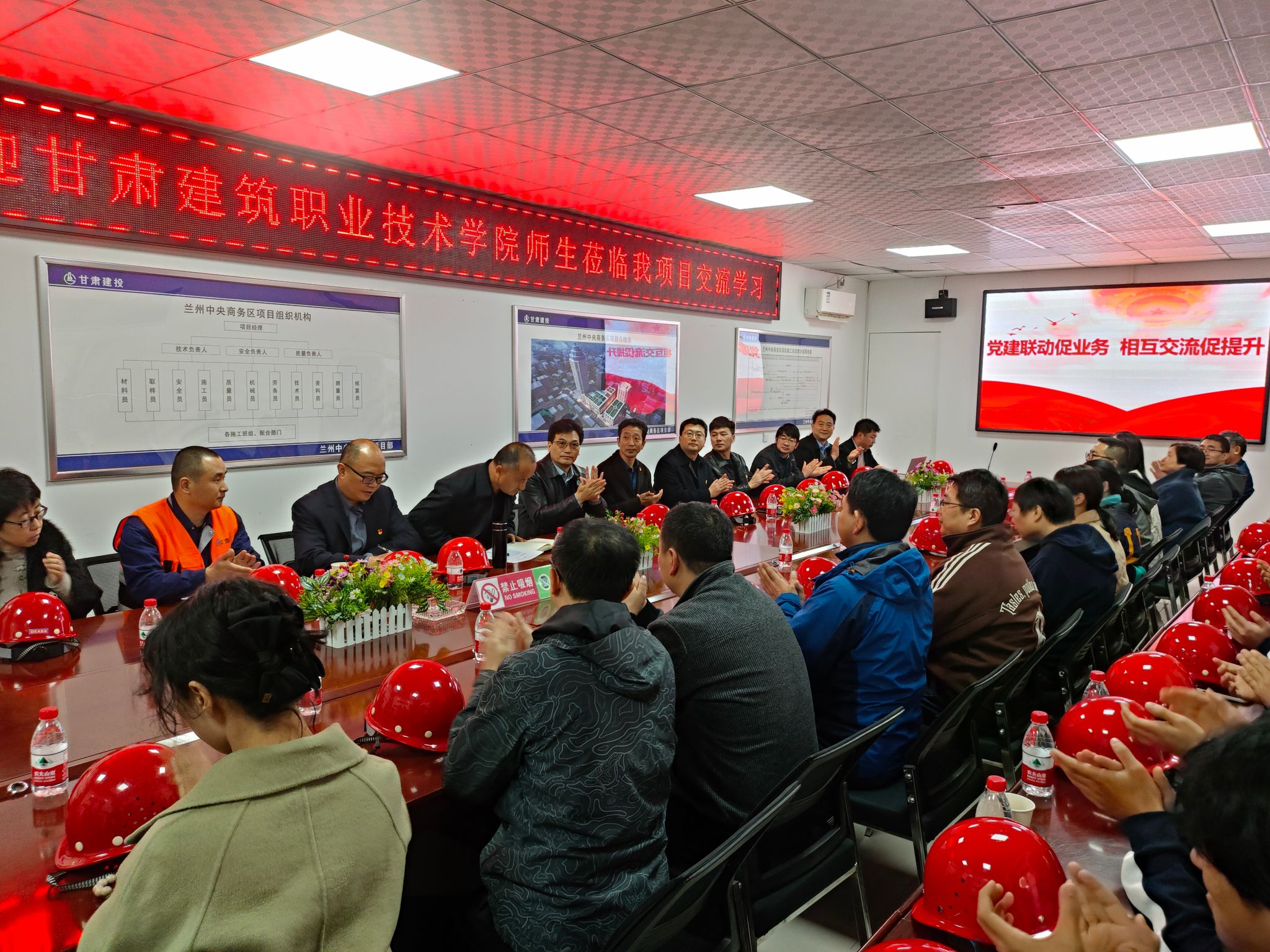活动伊始,孙宏鹏带领全体与会人员学习了《深入学习贯彻习近平关于应急管理的重要论述》选段。随后,全体人员观看了企业宣传片,深入了解了甘肃建投建设有限公司的企业文化及其在改革发展中的重要举措。李宏洲介绍了兰州中央商务区项目的整体情况,讲解了项目的施工难点、工艺技术创新、绿色施工等内容。