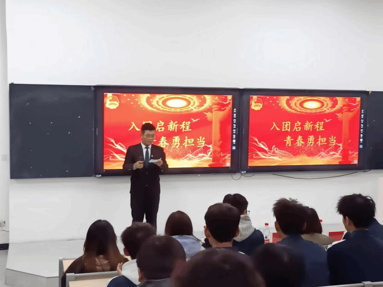 仪式在庄严的氛围中拉开帷幕,学院团总支书记周小钰老师上台作开场致辞,回顾了共青团的光辉历程,阐述其作为党的有力助手与后备军,在不同历史时期发挥的先锋模范作用。同时,寄语在场青年学子,希望新团员们能传承红色基因,牢记入团初心,以团组织为成长摇篮,锤炼品德、精进学业、勇于担当,在新时代浪潮中展现青春风采,让共青团员身份成为激励自我前行的闪耀勋章,一番话语满含期许,为仪式奠定激昂基调。