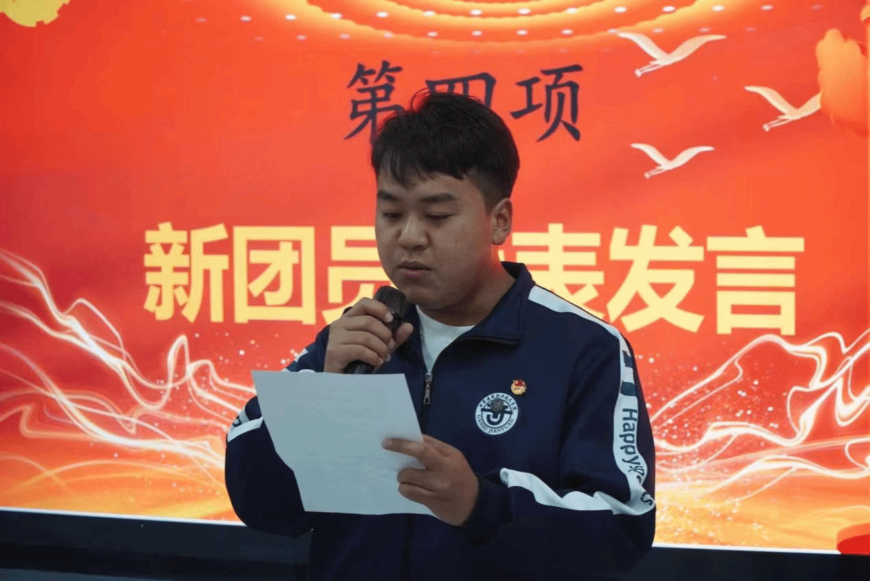 新团员代表安全技术与管理一班的漆淼同学迈着自信步伐上台发言,分享入团喜悦与内心感悟。感恩学校、团组织悉心培育,感慨先辈热血激励前行,承诺将在学业中攻坚克难、在社会实践里奉献爱心、在集体生活发挥能量,以团员标准严格律己,与伙伴携手共进,为团旗添彩、为学院争光,质朴言语饱含青春蓬勃朝气与担当之志。