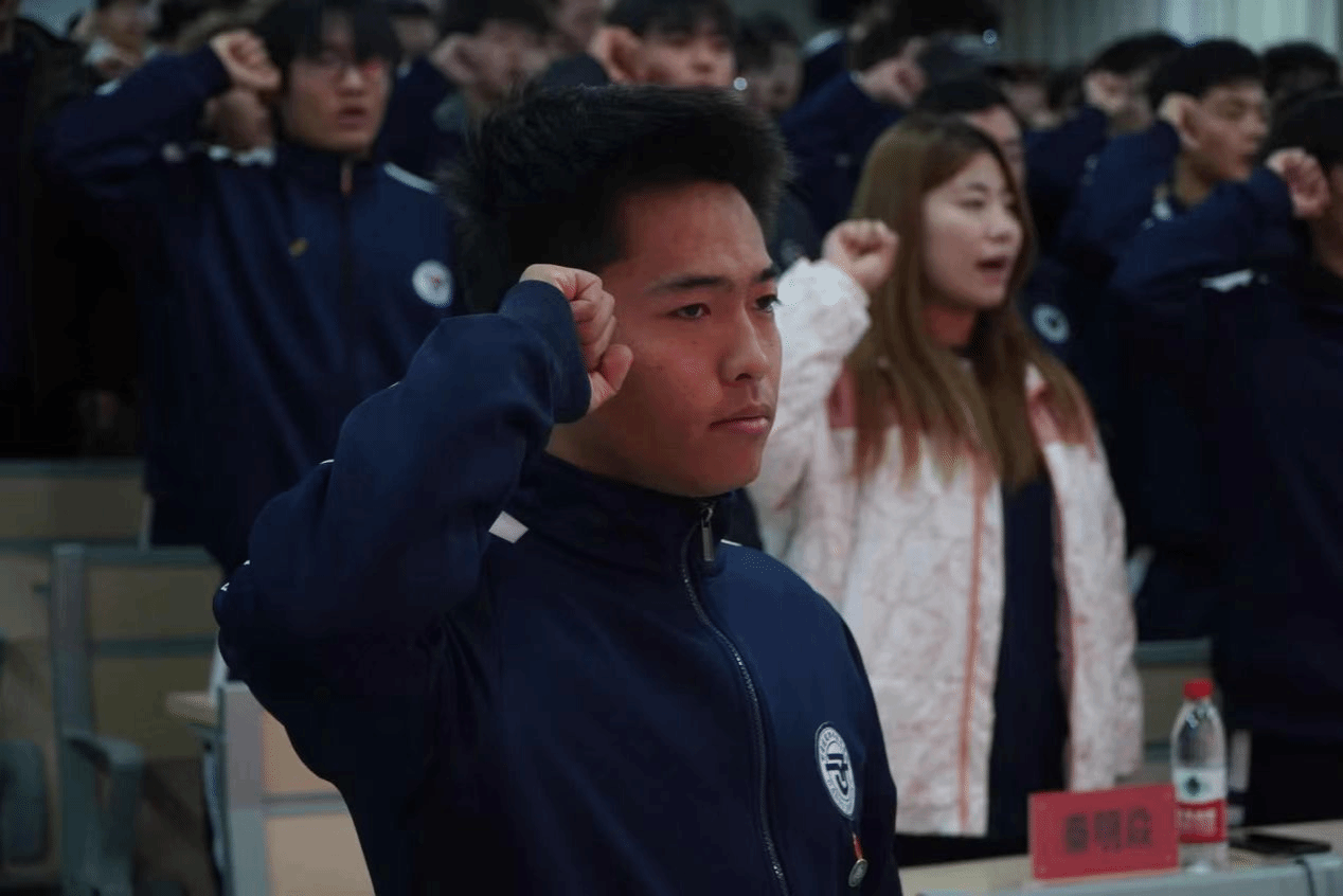 “我志愿加入中国共产主义青年团,坚决拥护中国共产党的领导……”新团员们举起右拳,面向团旗,在领誓人学院学生会主席马小东同学的带领下庄严宣誓。誓言铿锵有力、掷地有声,每一字都饱含着青年对团组织的忠诚、对责任的担当,彰显着他们愿为共产主义事业奋斗、为祖国建设拼搏的坚定决心,这一刻,入团誓词化作青春奋斗路上的行动指南,铭刻心间。