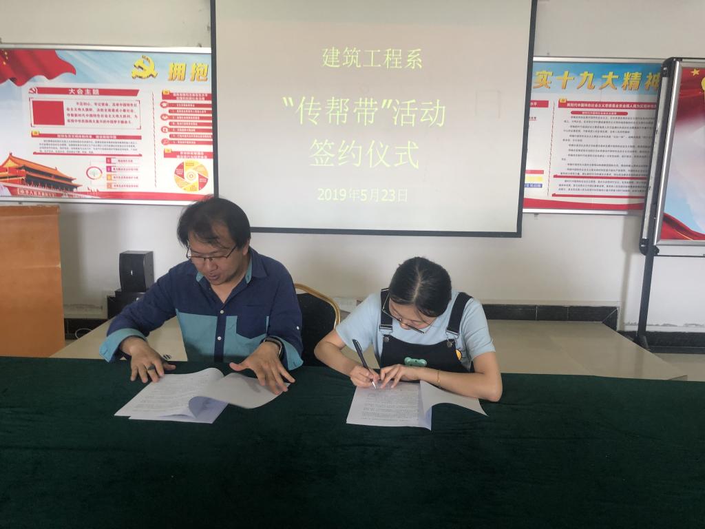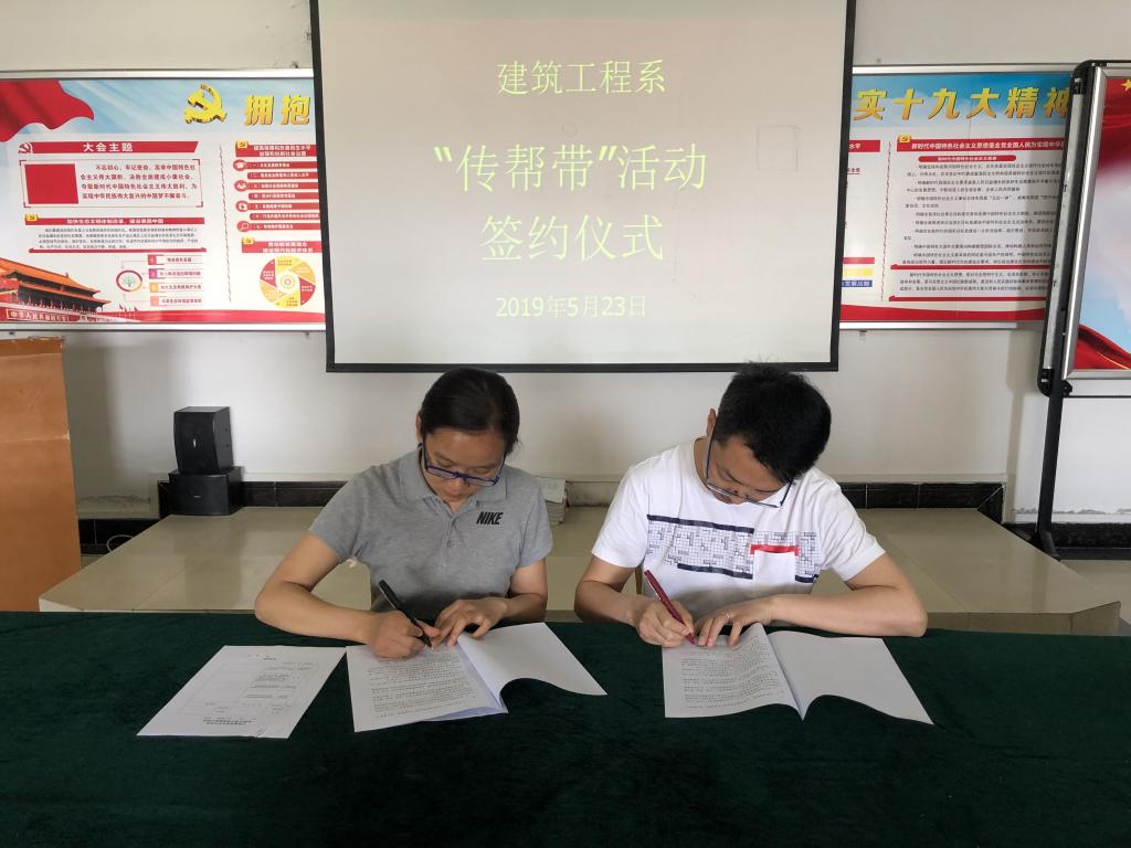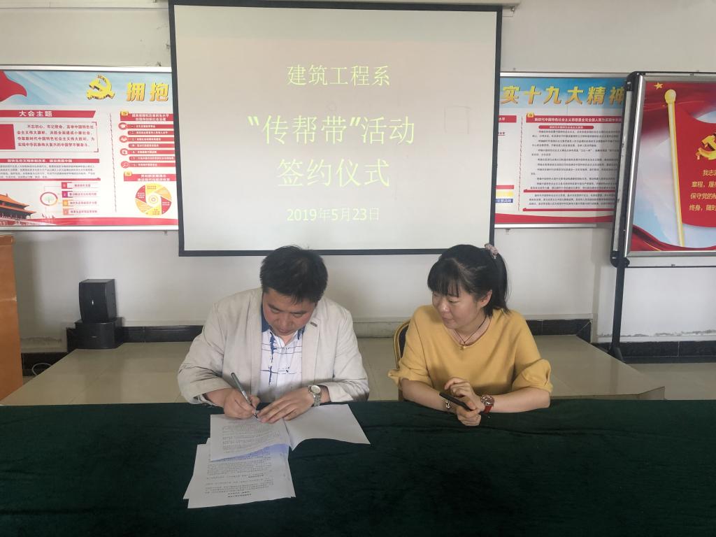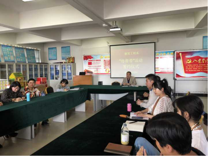 2019年5月23日下午15:00,建筑工程系在学院2#教学楼3楼系仿真模型室召开系部大会,组织新进教师及其指导教师进行“传帮带”活动签字仪式。系部在校本部全体教师参会,会议由系党支部副书记牛万强同志主持。
