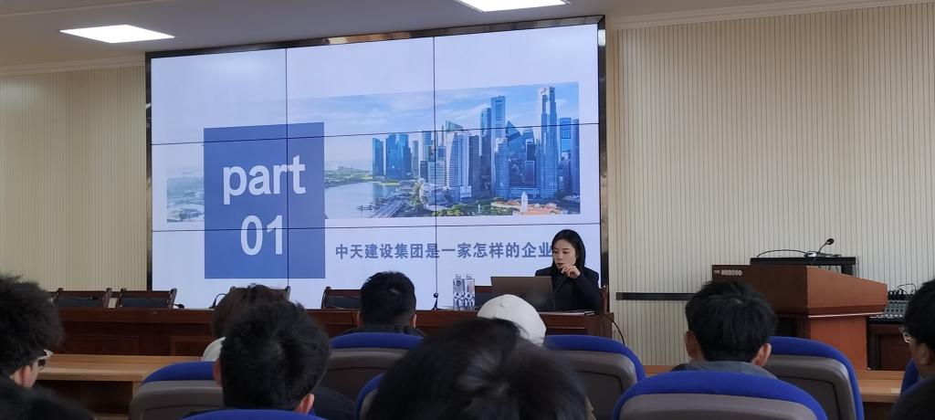 2023年12月22日,建筑工程系特邀校企合作单位中天建设集团有限公司甘肃分公司人力资源经理黄敏女士在学院2号教学楼三楼学术报告厅为系部学生作题为《建筑行业发展趋势及当代大学生职业发展机会》的专题讲座,2022级、2023级150余名学生代表参加,讲座由朱玉平老师主持。