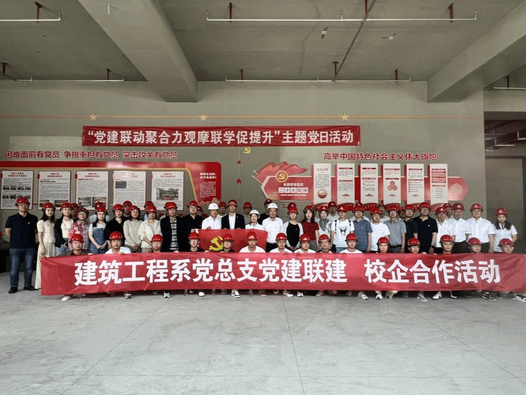 6月5日,建筑工程系党总支与甘肃建投建设有限公司九公司党支部开展支部联建活动,组织系部46名师生代表,其中包含10名2023级学生入党积极分子、5名2022级学生党员发展对象,赴该公司兰州环球中心5#综合楼项目进行观摩学习,并在项目部召开了校企支部联建座谈会。甘肃建投建设有限公司纪委书记杨晓玲,甘肃建投建设有限公司九公司党支部书记高幼青、经理杨军平、副经理常禄茂、副经理田三才、总工程师王金科及公司全体党员,建筑工程系党总支书记任旭东、主任、第二党支部书记李斌、副主任、第一党支部书记李天平、第三党支部书记赵富荣、相关教研室主任及教师党员代表参加,会议由甘肃建投建设有限公司九公司党支部书记高幼青同志主持。
