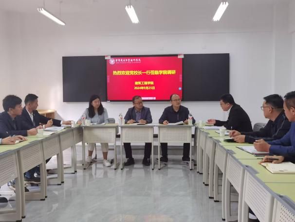 9月25日,党委副书记、校长党星海带领办公室、教务处负责人深入建筑工程学院进行调研。建筑工程学院班子成员、教研室主任、专业负责人、教师代表、学院干事代表及辅导员代表参加调研座谈。