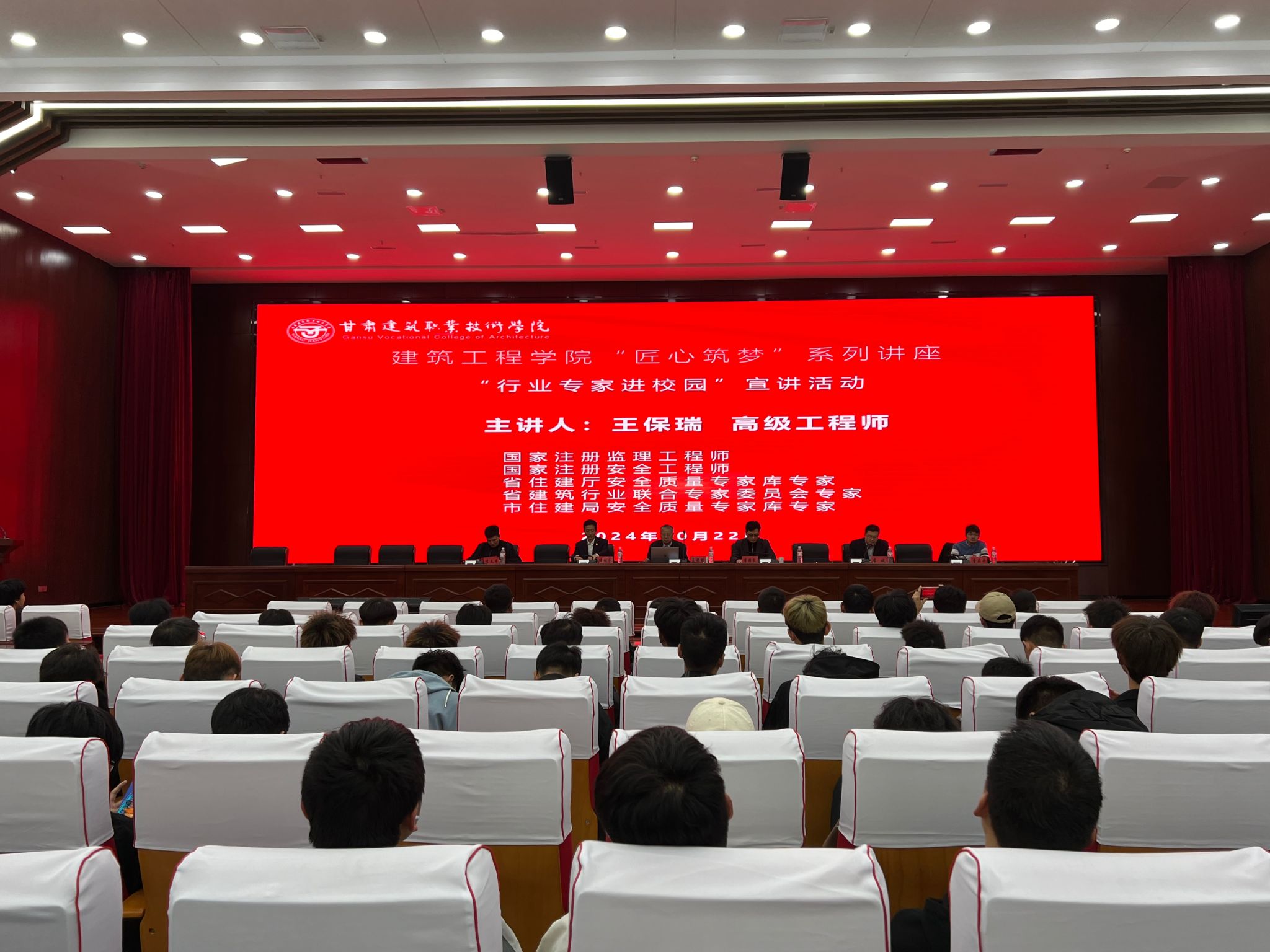 10月22日,建筑工程学院举办了“匠心筑梦”系列讲座——“行业专家进校园”学术活动。此次活动邀请甘肃建筑职业技术学院客座教授、原省建设厅安全质量监督管理局副局长王保瑞主讲。学校党委委员、副校长李维敦,建筑工程学院领导班子成员,建筑工程学院专任教师和学生代表聆听了本次讲座。讲座由建筑工程学院副院长李斌主持。