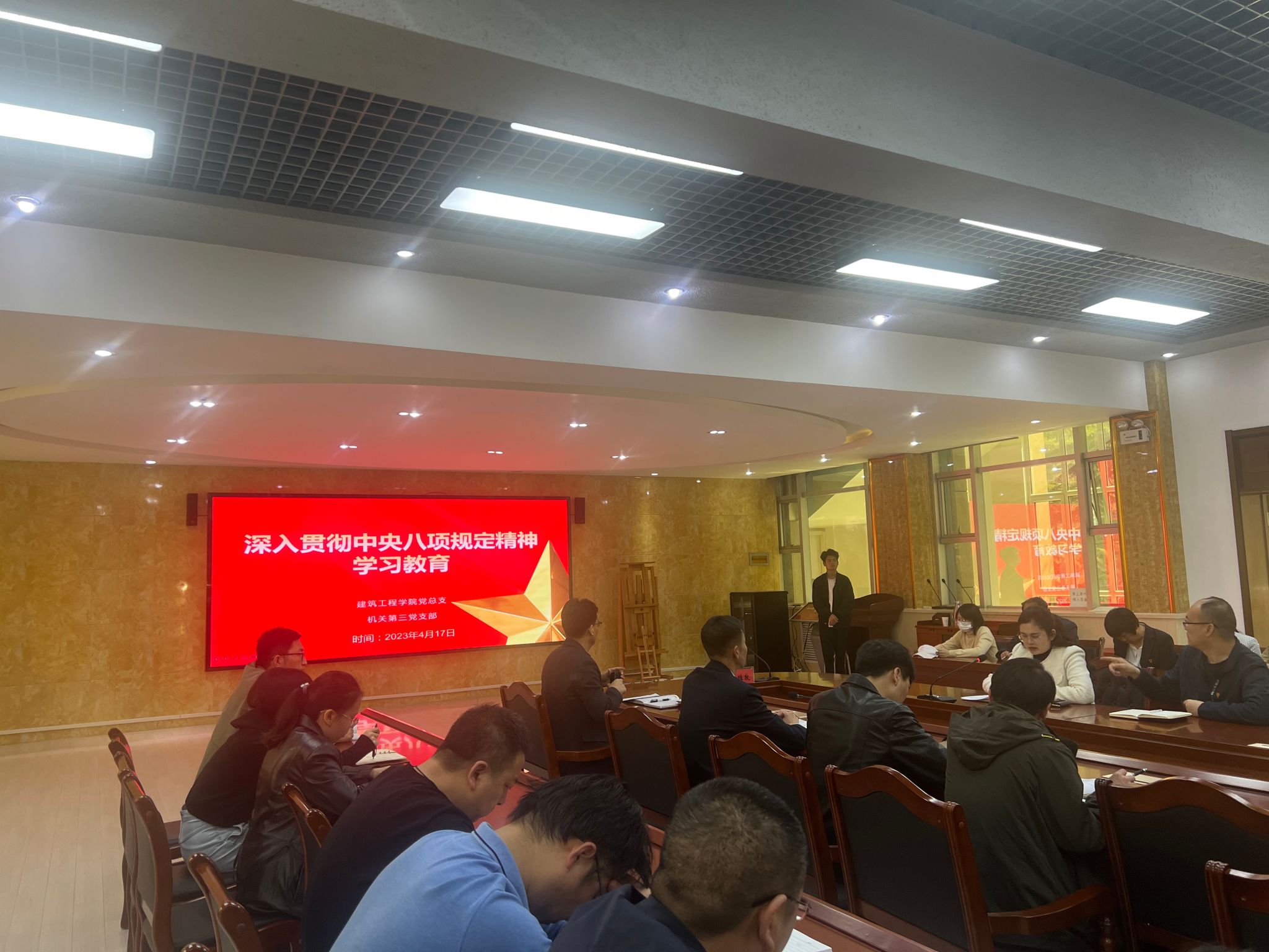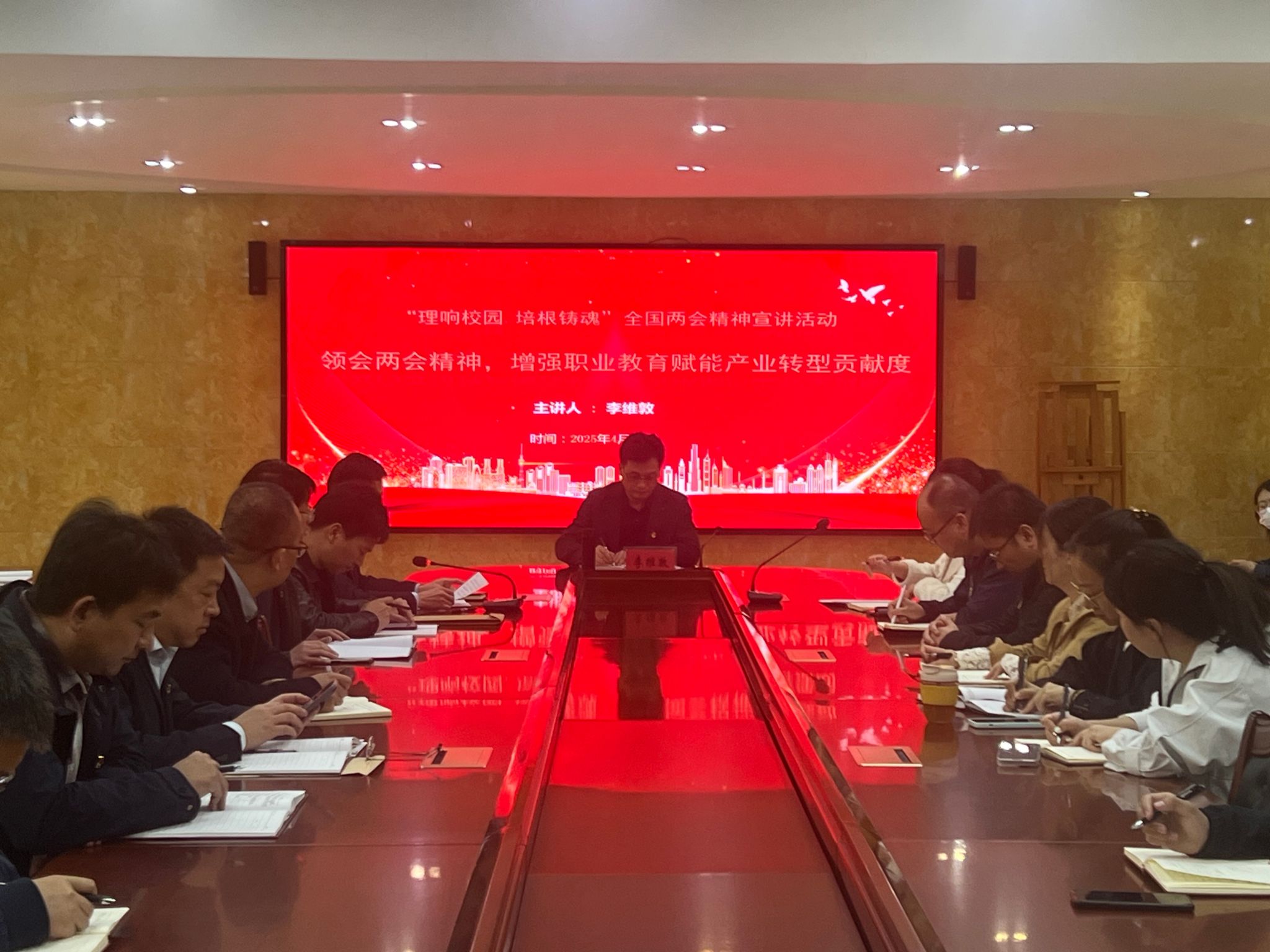 4月17日,根据学院党委工作安排,学院党委委员、副校长李维敦以《领会两会精神 增强职业教育赋能产业转型贡献度》为主题开展宣讲活动,建筑工程学院党总支、机关第三党支部全体党员参加学习活动,宣讲活动由建筑工程学院党总支书记任旭东主持。